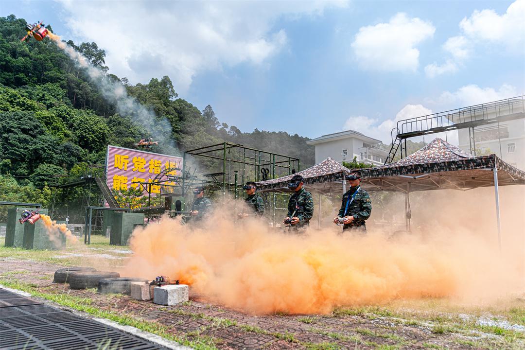 在陣陣喝彩聲中,高樓攀登、索降、無人機(jī)打擊目標(biāo)、火焰噴射器使用等課目陸續(xù)展開。綠茵場上一時殺聲震天,火舌躍動,硝煙彌漫。