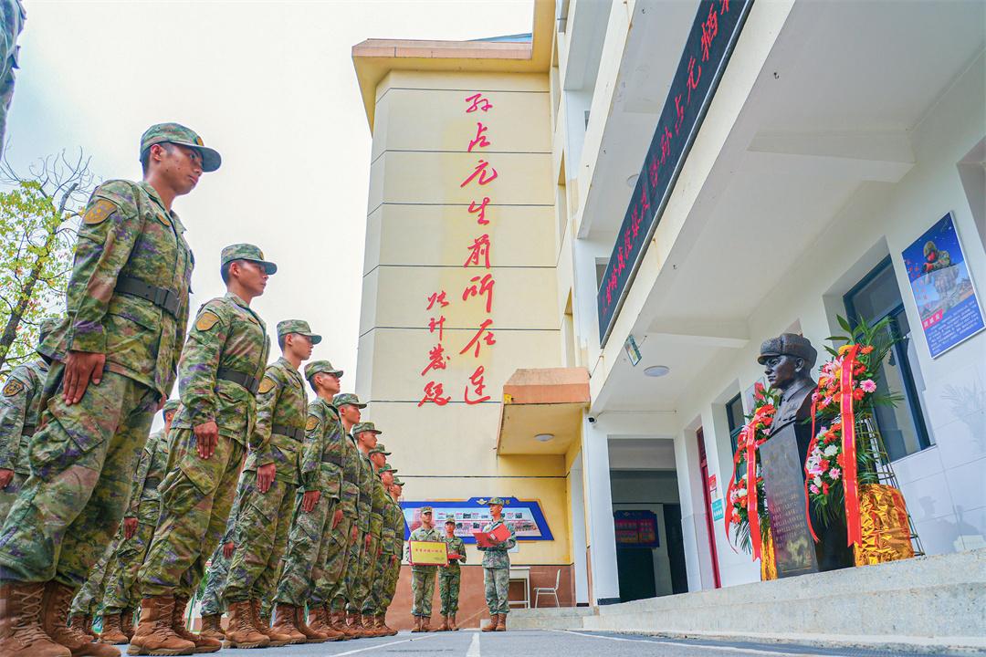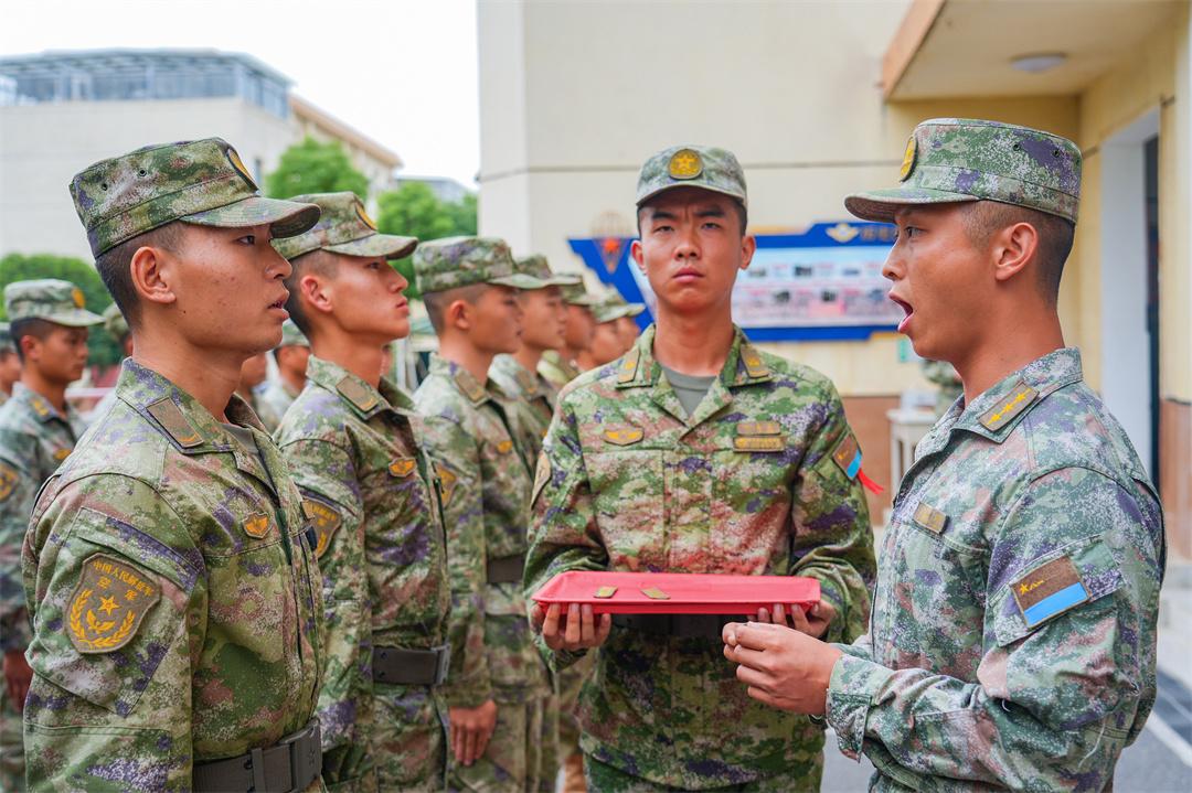 圖為舉行入連儀式,指導(dǎo)員成傳港為新同志們授予榮譽編號,注入英雄血脈。盛海倫 攝
