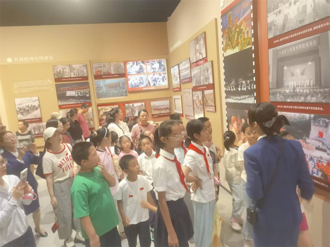 南京雙擁文化館展陳面積約2500平方米,主題為“軍民同心榮光共鑄”,分為浴血奮戰(zhàn)魚水情深、奮發(fā)圖強休戚與共、勇立潮頭軍民同心、踔厲前行強國強軍四個篇章,采取圖文、實物、影像、AI復原等多元手段,講述發(fā)生在南京的雙擁故事,生動呈現“愛我人民愛我軍”的時代篇章和軍政軍民團結的恢宏畫卷。試開放當天,有上千人次前來參觀。