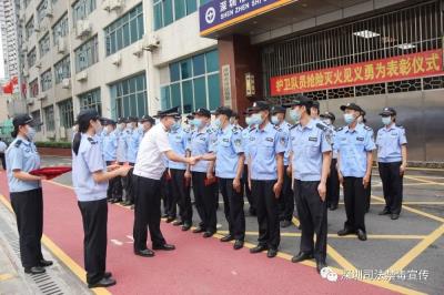 7月6日,強戒一所舉行搶險滅火見義勇為表彰儀式。強戒一所黨委副書記、紀(jì)委書記賴國強為參與救火的警戒護衛(wèi)隊隊員頒發(fā)榮譽證書和獎勵金,充分肯定警戒護衛(wèi)隊對兩次火情的妥善處置,贊揚其是一支訓(xùn)練有素、業(yè)務(wù)精湛、有戰(zhàn)斗力的隊伍。