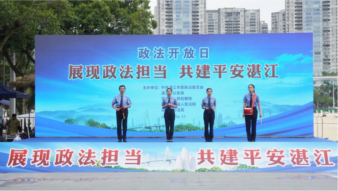 巡邏艇海上表演、特警戰(zhàn)術(shù)槍操演示、法律互動有獎問答、禁毒宣講、特警裝備展示、無人機(jī)夜空秀……9月16日至17日,廣東省湛江市赤坎區(qū)金沙灣廣場熱鬧非凡,湛江市委政法委組織市公安局、市人民檢察院、市中級人民法院、市司法局聯(lián)合開展的政法開放日活動在這里舉行。該活動主題為“展現(xiàn)政法擔(dān)當(dāng),共建平安湛江”,市民齊聚活動現(xiàn)場,參觀體驗、互動交流,“零距離”領(lǐng)略政法隊伍風(fēng)采。