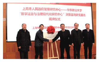 日前,上海市人民政府發(fā)展研究中心-華東政法大學“數字法治與治理現代化研究中心”決策咨詢研究基地揭牌儀式在華東政法大學長寧校區(qū)舉行。上海市人民政府發(fā)展研究中心黨組書記、主任祁彥,副主任周國平,華東政法大學黨委書記郭為祿,黨委副書記、校長葉青,副校長張明軍以及雙方職能部處負責人和專家代表等近30人參會。揭牌儀式由葉青主持。