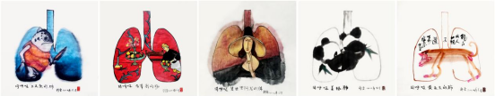 在舒勇“每日一畫(huà)”創(chuàng)造的眾多意象中,《同呼吸共命運(yùn)》系列大概是最簡(jiǎn)單至極的表達(dá)。作品運(yùn)用“肺”的基本形態(tài)作為背景容器,將世界各國(guó)著名藝術(shù)家作品及思想融進(jìn)了這個(gè)基本形態(tài)的肺容器中。以此來(lái)表達(dá),我們雖然生活在不同的地方,來(lái)自不同的國(guó)家,擁有不同的膚色、不同的文化,但是我們有同樣的肺,呼吸在同一片藍(lán)天下。