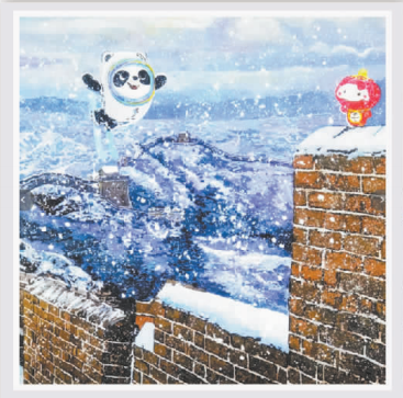 有人困于生活的瑣碎庸庸度日,也有人不甘平庸,在彷徨中奮力向前。舒勇在《一起向未來(lái)》系列作品中為我們開(kāi)辟了一個(gè)逃離單調(diào)現(xiàn)實(shí)的夢(mèng)幻世界,簡(jiǎn)單樸實(shí)的平面化特征,可愛(ài)的冰墩墩和雪容融形象高度概括、簡(jiǎn)潔又形神兼?zhèn)?,富有形式感、秩序感、韻律感,具有?qiáng)烈的裝飾性和形式美感,他對(duì)色彩的使用結(jié)合了綜合主義風(fēng)格,將我們卷入另一個(gè)時(shí)空,這就是藝術(shù)想象力的魅力所在。透過(guò)絢爛豐富的畫(huà)作,我們看到的是舒勇飽滿而熱烈的心靈,是最純粹的情感流淌,是源源不絕的熱切期待和渴望。