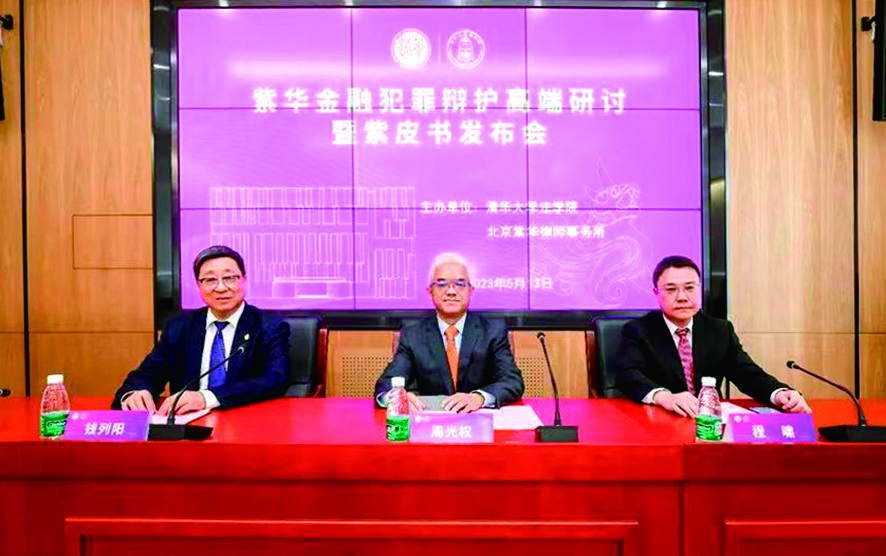 5月13日,由清華大學法學院、北京紫華律師事務所共同主辦的紫華金融犯罪辯護高端研討暨紫皮書發(fā)布會在清華大學舉行。清華大學法學院院長周光權、北京紫華律師事務所主任錢列陽出席會議并致辭,清華大學法學院副院長程嘯主持,來自各界代表圍繞“金融犯罪的發(fā)展態(tài)勢及法律應對”這一主題展開探討。會議期間,清華大學法學院紫華國際學術報告廳揭牌儀式同期舉行。