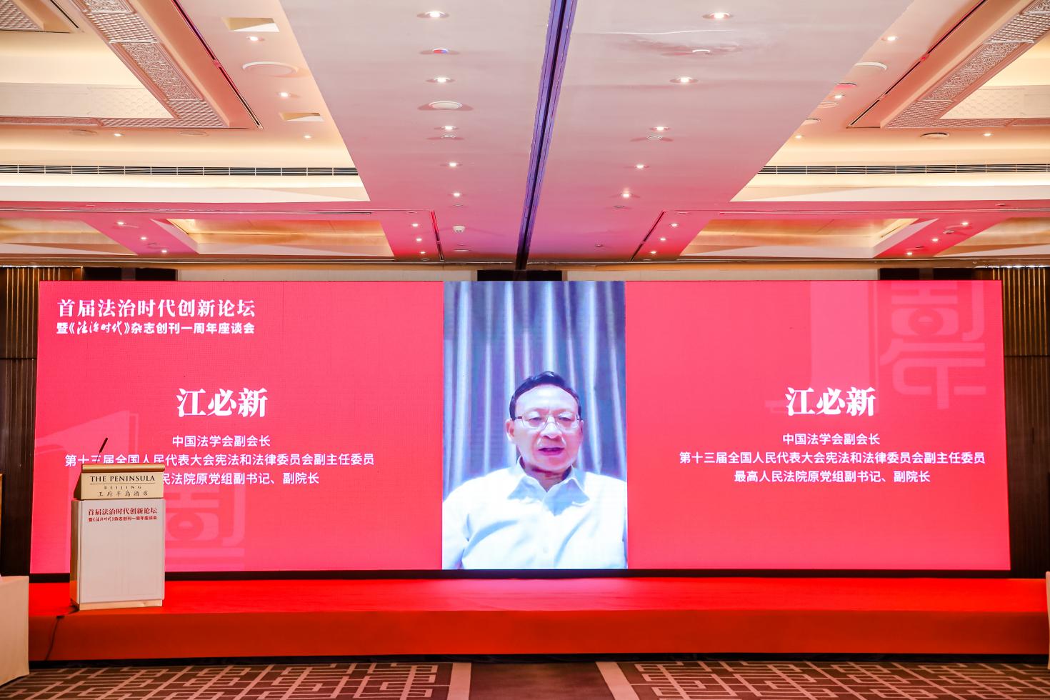中國(guó)法學(xué)會(huì)副會(huì)長(zhǎng),第十三屆全國(guó)人民代表大會(huì)憲法和法律委員會(huì)副主任委員,最高人民法院原黨組副書記、副院長(zhǎng)江必新在視頻致辭中表示,《法治時(shí)代》需要守正,更需要?jiǎng)?chuàng)新。法治必須與時(shí)俱進(jìn),必須不斷地創(chuàng)新,真正對(duì)我們?nèi)娼ㄔO(shè)社會(huì)主義現(xiàn)代化國(guó)家提供更加有力的保障。