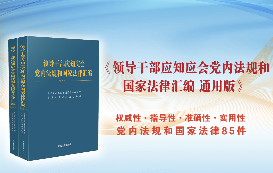 中央依法治國辦、司法部編輯的《領導干部應知應會黨內(nèi)法規(guī)和國家法律匯編 通用版》一書,近日由中國法制出版社公開出版發(fā)行。