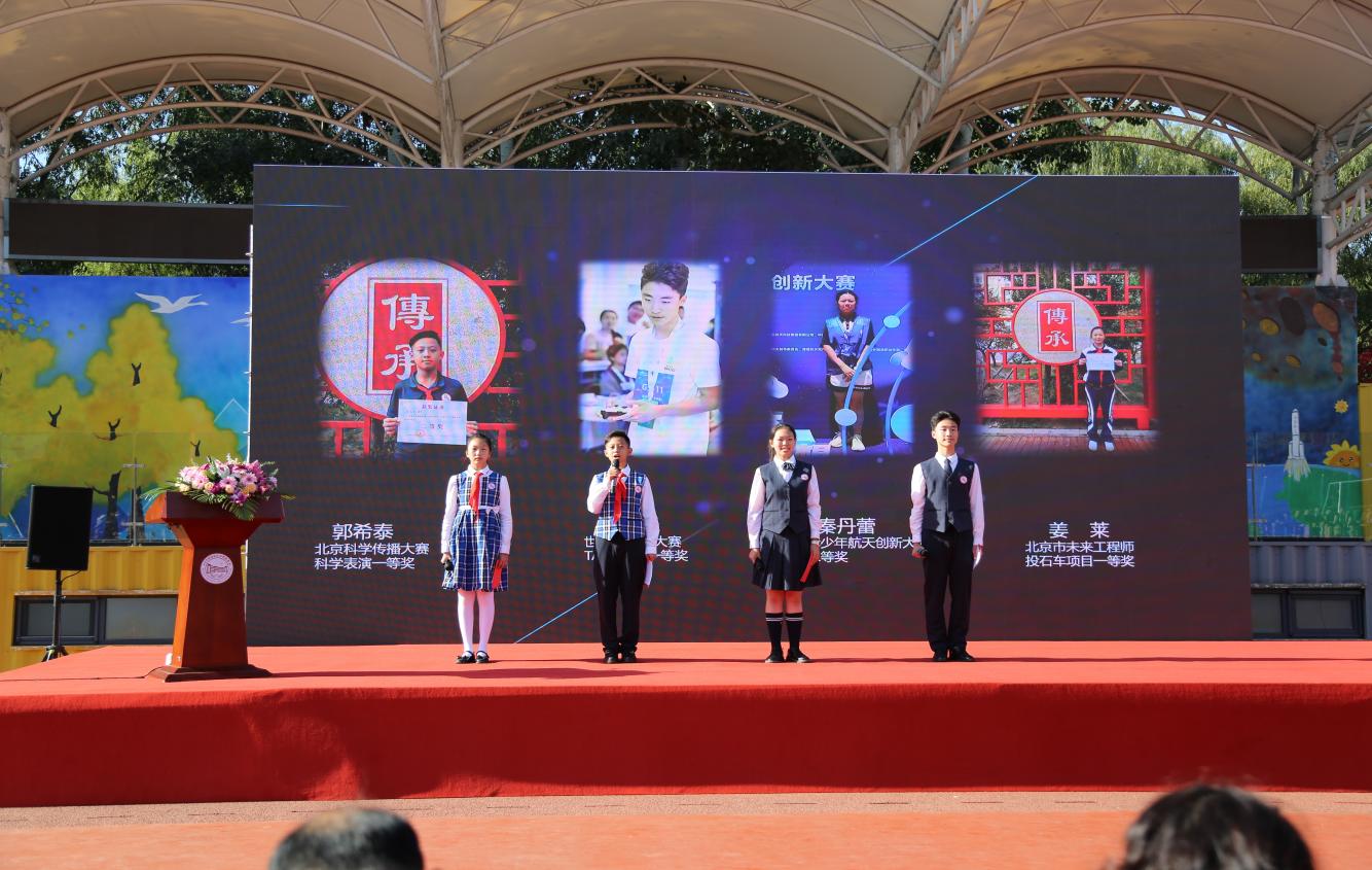活動(dòng)現(xiàn)場,分別獲得2021年第三屆北京科學(xué)傳播大賽中榮獲科學(xué)表演團(tuán)體一等獎(jiǎng)、2023年北京市未來工程師競賽小學(xué)組一等獎(jiǎng)、2022年世界機(jī)器人大賽總決賽挑戰(zhàn)賽一等獎(jiǎng)、2023全國青少年航天創(chuàng)新大賽二等獎(jiǎng)的四名學(xué)生代表郭希泰、劉嘉樂、秦丹蕾、姜萊,分享了參加科技活動(dòng)的經(jīng)歷與心得體會(huì)?!懊恐軆晒?jié)的科學(xué)課點(diǎn)燃了我們的太空夢”“在一次次賽前集訓(xùn)中,通過老師帶領(lǐng)我們查找資料、研究原理、設(shè)計(jì)作品等動(dòng)手實(shí)踐活動(dòng),我提高了綜合運(yùn)用知識(shí)的能力和創(chuàng)造性解決問題的能力”“曾經(jīng)基礎(chǔ)科學(xué)知識(shí)薄弱的我,各種提問占用老師很多時(shí)間,老師卻總是表揚(yáng)我虛心求教的態(tài)度”“在討論比賽項(xiàng)目時(shí),我們?cè)谙嗷ヌ釂栔信鲎菜季S的火花,我學(xué)會(huì)了如何傾聽、如何溝通”……學(xué)生們認(rèn)為,他們科學(xué)興趣的激發(fā)、科學(xué)探究能力的提升、科技實(shí)踐能力的強(qiáng)化、科技探索之路的開啟,離不開學(xué)校豐富的科技教育課程、科技競賽平臺(tái)的搭建、老師的悉心教導(dǎo)與鼓勵(lì)、小組的合作探究。