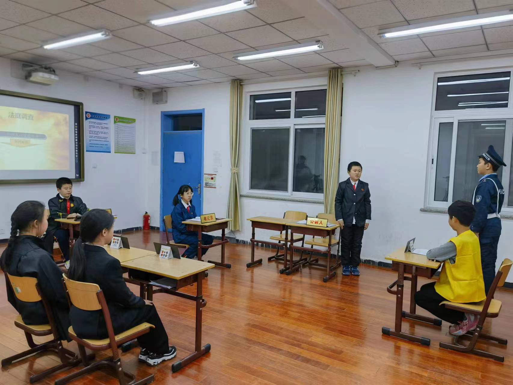 高家園小學(xué)學(xué)生以情景表演的形式對(duì)一起“網(wǎng)絡(luò)詐騙案”進(jìn)行“審理”。