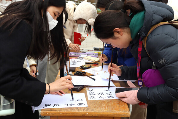 同一天,主題活動(dòng)在清華大學(xué)學(xué)生服務(wù)中心前舉辦?;顒?dòng)通過限時(shí)背誦憲法名言、法律知識(shí)問答等游戲方式,向師生普及憲法,引導(dǎo)學(xué)習(xí)憲法?,F(xiàn)場(chǎng)設(shè)計(jì)了“想點(diǎn)大事”“三行情書”“與法同行”“現(xiàn)身‘書法’”等活動(dòng),鼓勵(lì)師生們以筆書寫憲法意,以心感悟憲法情。現(xiàn)場(chǎng)還準(zhǔn)備了帶有宣傳法治內(nèi)容的小夜燈、筆記本、卡套、文件夾等文創(chuàng)獎(jiǎng)品。
