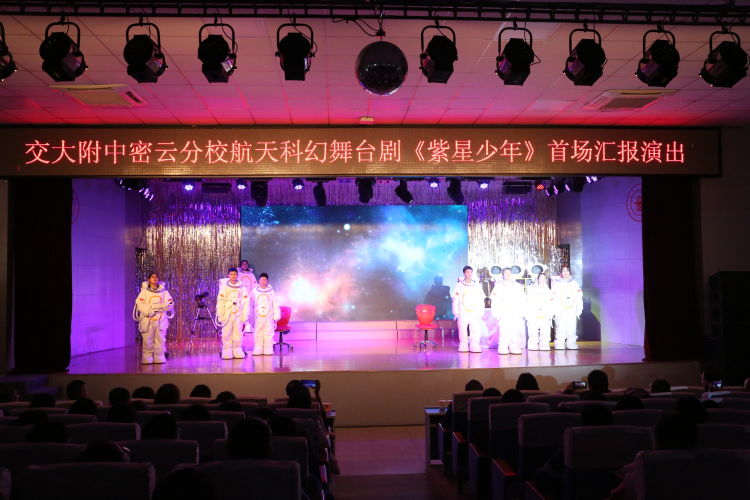 科技是興國之源,教育是立國之本。為進(jìn)一步提高科學(xué)教育意識和學(xué)生科學(xué)素養(yǎng),交大附中密云分校籌備半年的“鑄飛天夢想 促幸福成長”航天科幻舞臺劇《紫星少年》在2024年1月18日首演。北京市密云區(qū)各級領(lǐng)導(dǎo)及各中學(xué)書記、校長參加了活動。
