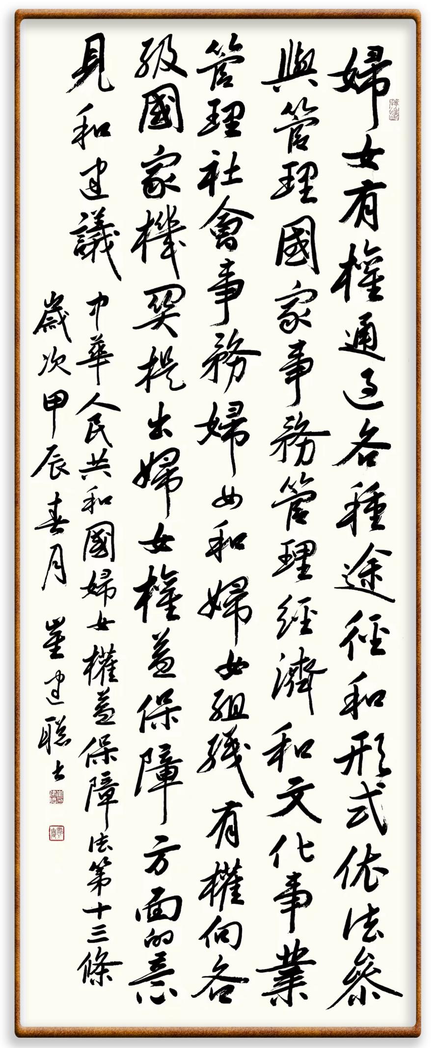 在“三八”國際婦女節(jié)之際,“書·法”系列活動,邀請書法家及書法愛好者們將筆端對準《中華人民共和國婦女權(quán)益保障法》,書寫屬于婦女的法律“盾牌”。