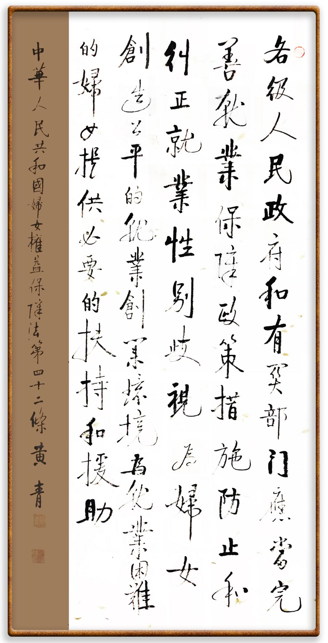在“三八”國際婦女節(jié)之際,“書·法”系列活動,邀請書法家及書法愛好者們將筆端對準《中華人民共和國婦女權(quán)益保障法》,書寫屬于婦女的法律“盾牌”。