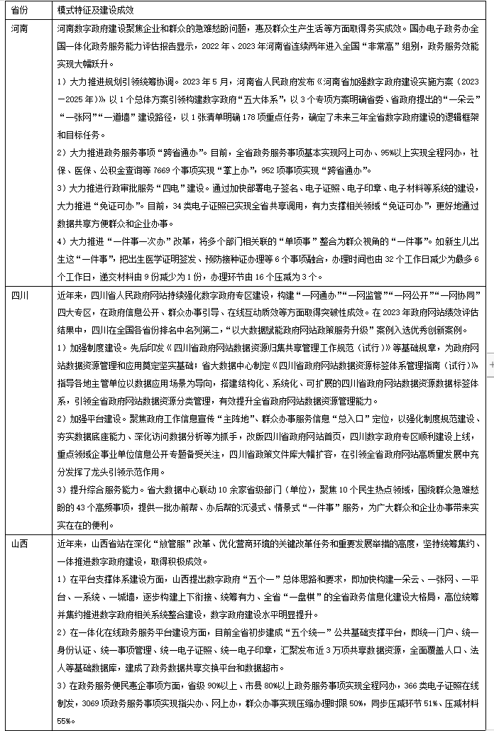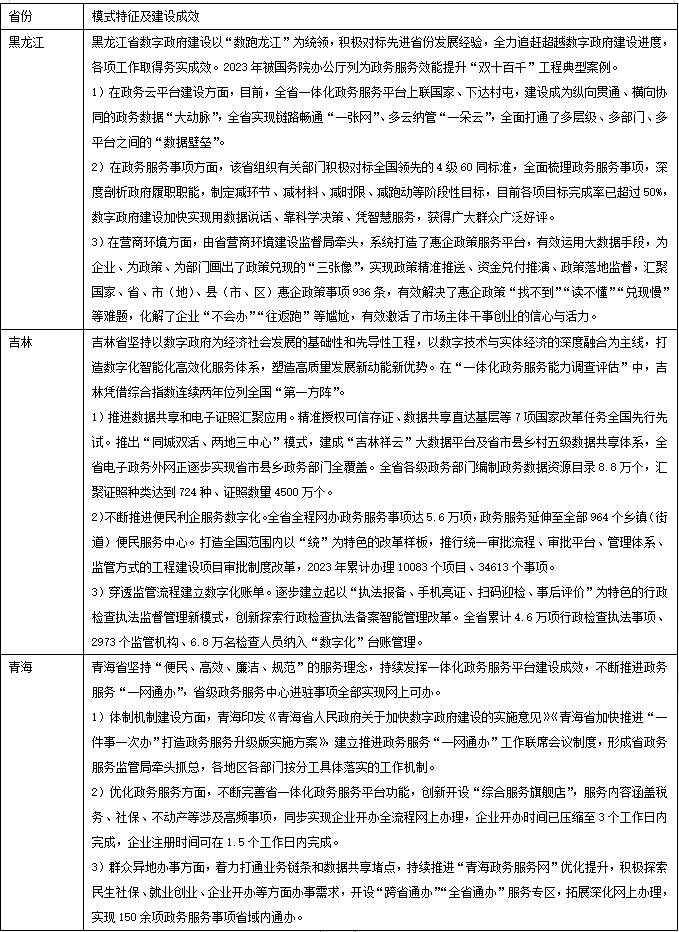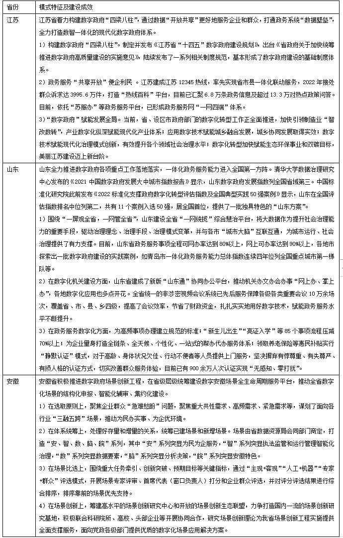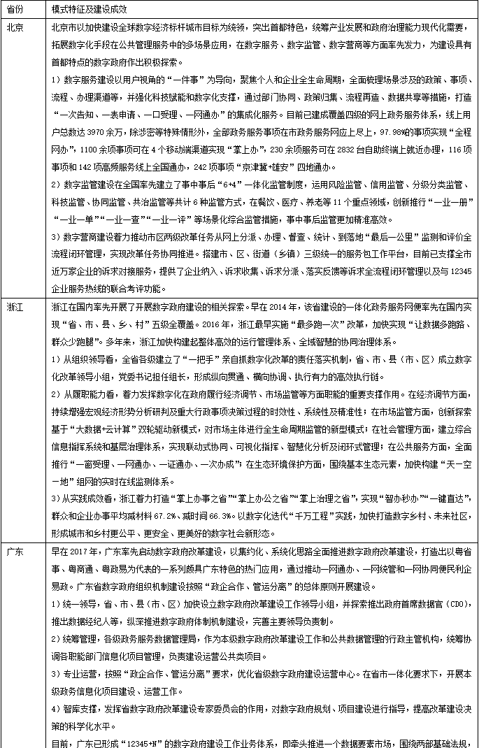 圖表4 先行引領型部分省市數(shù)字政府建設模式及成果