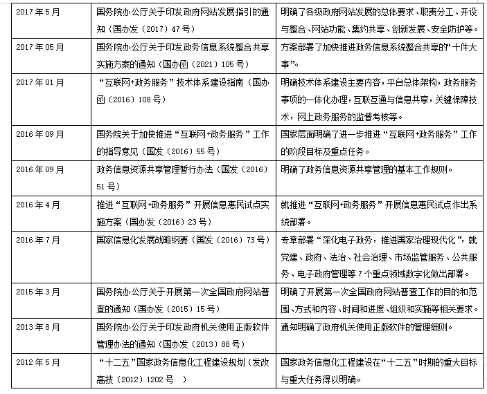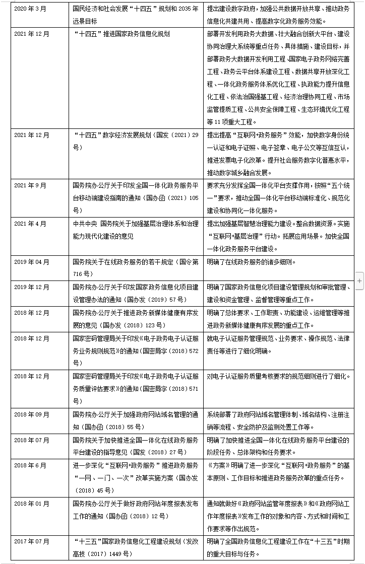 圖表1 黨中央、國務院近年來關于數(shù)字政府建設的重磅文件(數(shù)據(jù)來源:作者據(jù)中國政府網(wǎng)公開信息整理)