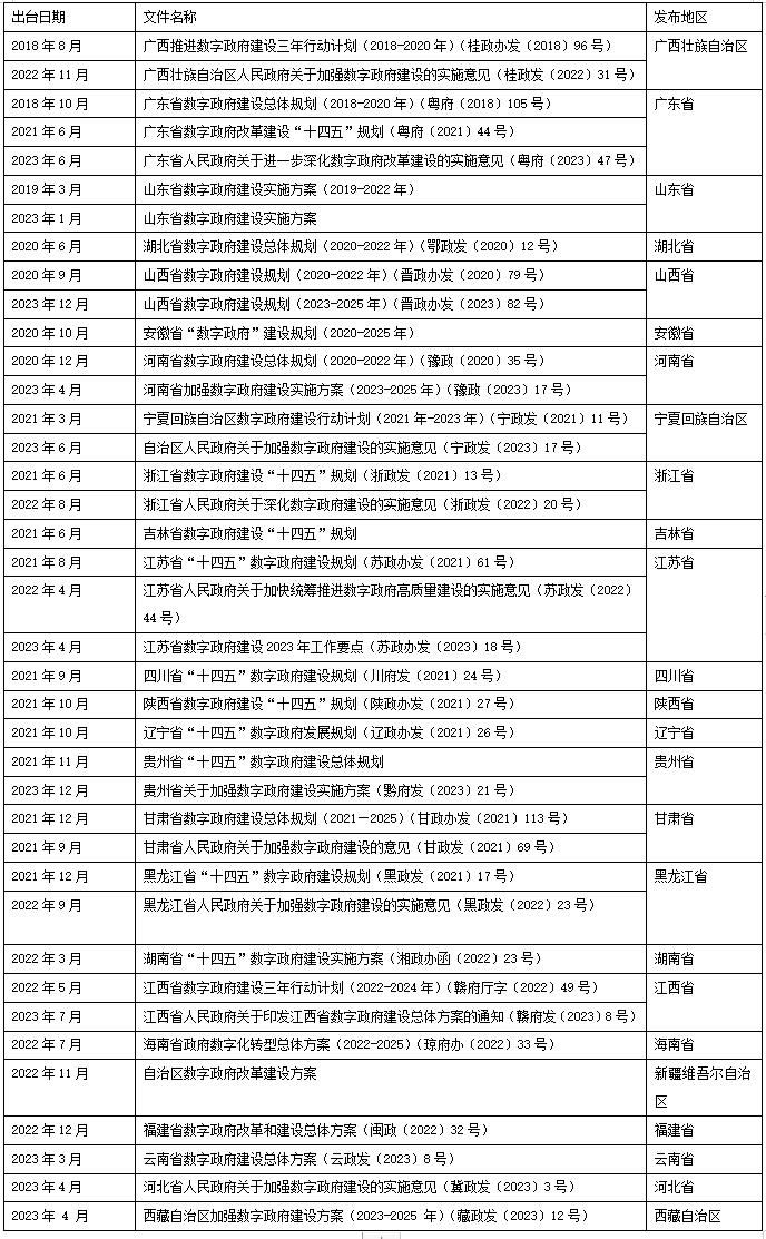 圖表2 各省關于數(shù)字政府建設的重要指導文件(數(shù)據(jù)來源:作者據(jù)各省政府網(wǎng)站公開資料整理)