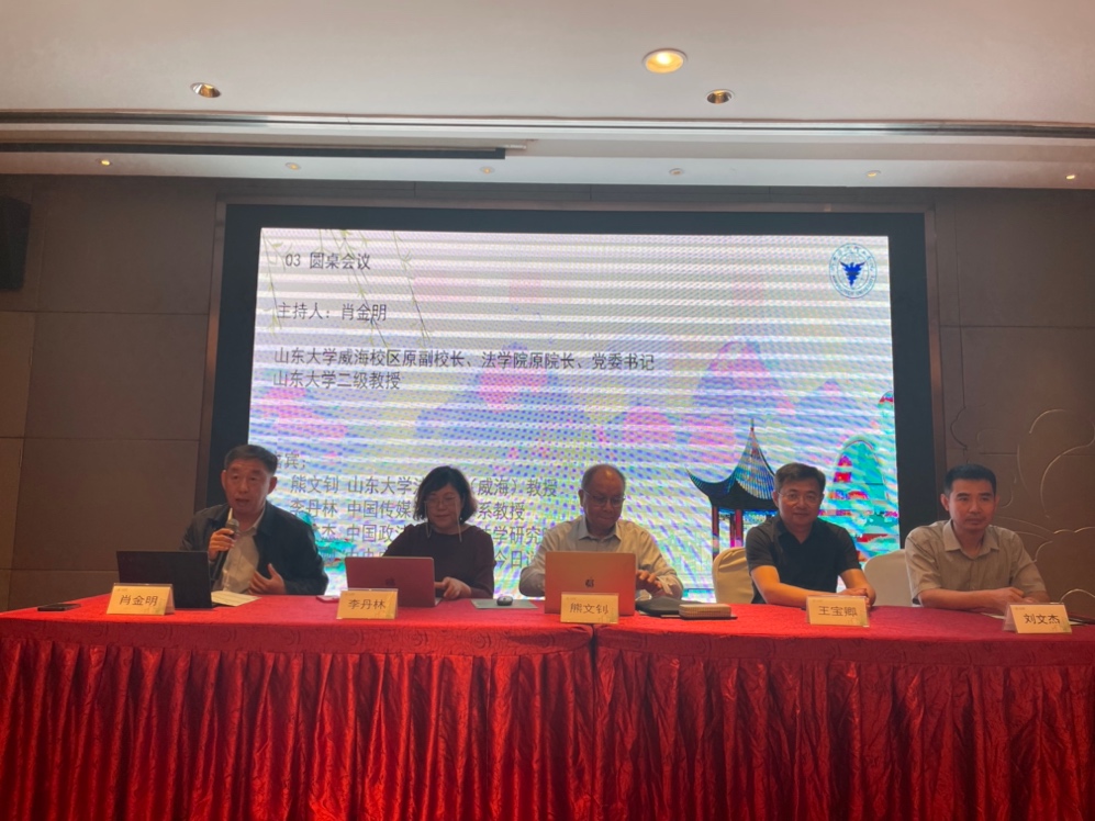 文化法治圓桌會(huì)議環(huán)節(jié)由肖金明教授主持,長(zhǎng)期關(guān)注文化法學(xué)的著名公法學(xué)者、山東大學(xué)法學(xué)院(威海)熊文釗教授,中國傳媒大學(xué)文化產(chǎn)業(yè)管理學(xué)院李丹林教授,中國政法大學(xué)比較法學(xué)研究院劉文杰教授,中央廣播電視總臺(tái)《今日說法》欄目制片人王寶卿共四位專家學(xué)者分別以文化與法治為主題,探討了文化法治的思想融合及其學(xué)理性闡釋,對(duì)文化法學(xué)體系的建構(gòu)進(jìn)行了研討。