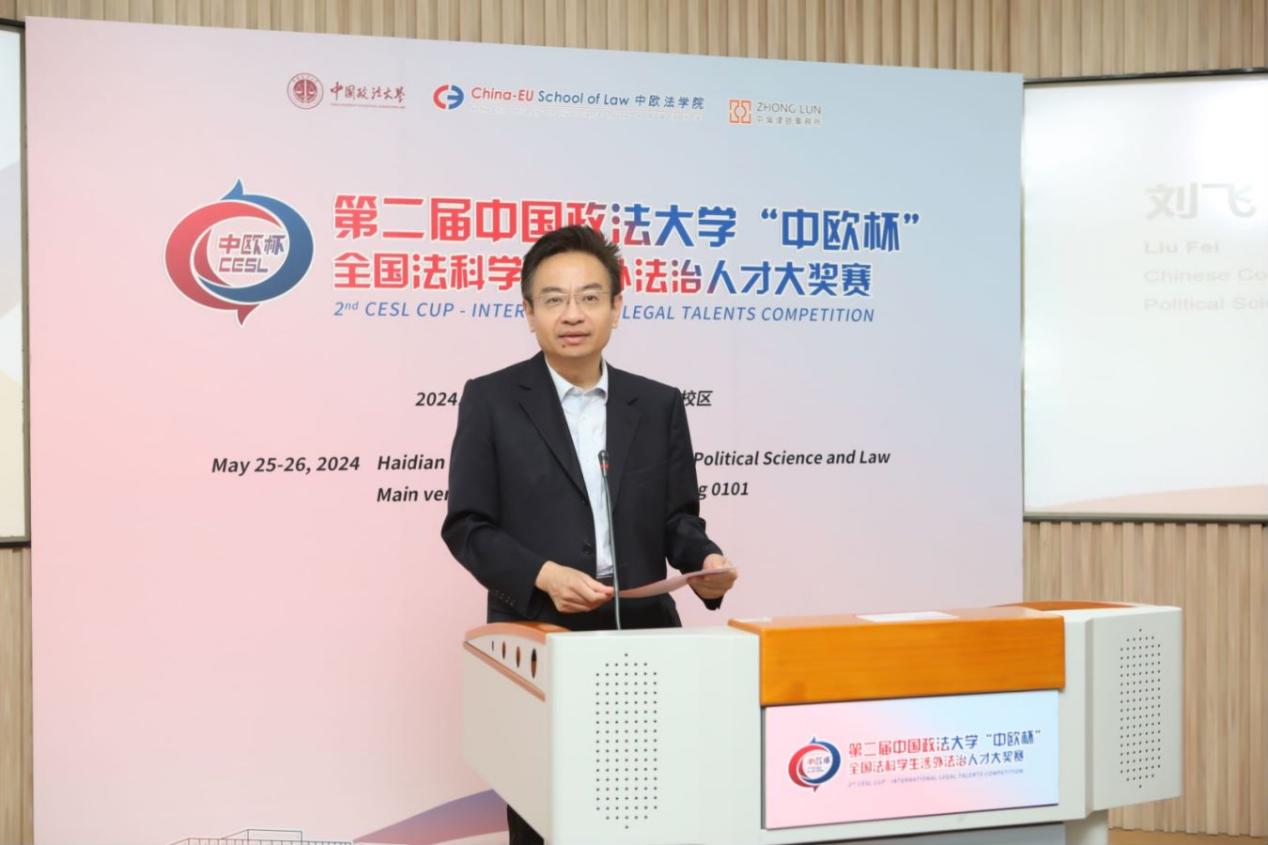 (中國(guó)政法大學(xué)中歐法學(xué)院中方聯(lián)席院長(zhǎng)劉飛致辭 主辦方供圖)