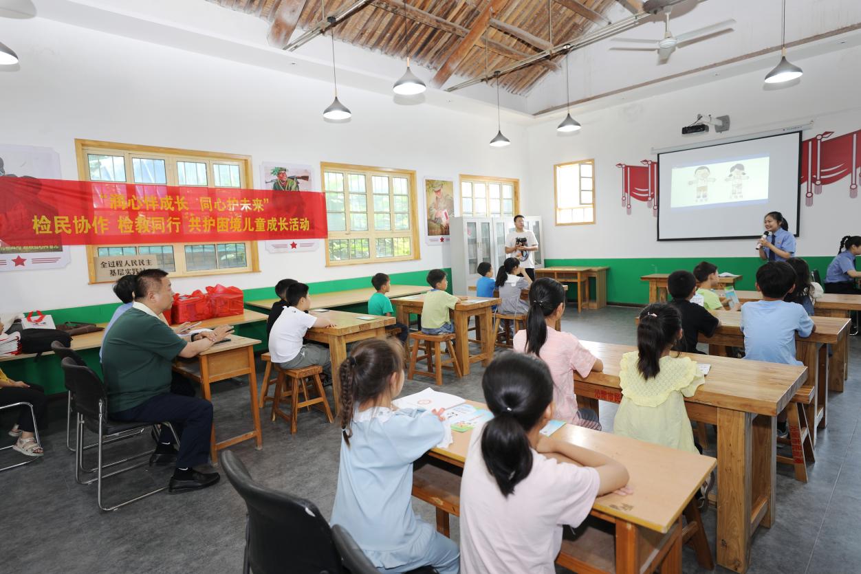 在“六一”兒童節(jié)來(lái)臨之際,河南省焦作市沁陽(yáng)市人民檢察院“豫”見(jiàn)未來(lái)·暖暖未檢工作室攜手沁陽(yáng)市民政局、教體局,于5月26日,在沁陽(yáng)市崇義鎮(zhèn)西茍莊村未成年人保護(hù)工作站,共同開(kāi)展了一場(chǎng)主題為“潤(rùn)心伴成長(zhǎng) 同心護(hù)未來(lái)”關(guān)愛(ài)困境兒童成長(zhǎng)的活動(dòng)。沁陽(yáng)市人大代表田玲利、周倩,市政協(xié)委員侯芳芳,市檢察院副檢察長(zhǎng)李玥言,市民政局副局長(zhǎng)王崇,市教體局副局長(zhǎng)張九宏,崇義鎮(zhèn)村兒童主任,中學(xué)、小學(xué)教師代表,學(xué)生、家長(zhǎng)代表70余人參加了活動(dòng)。