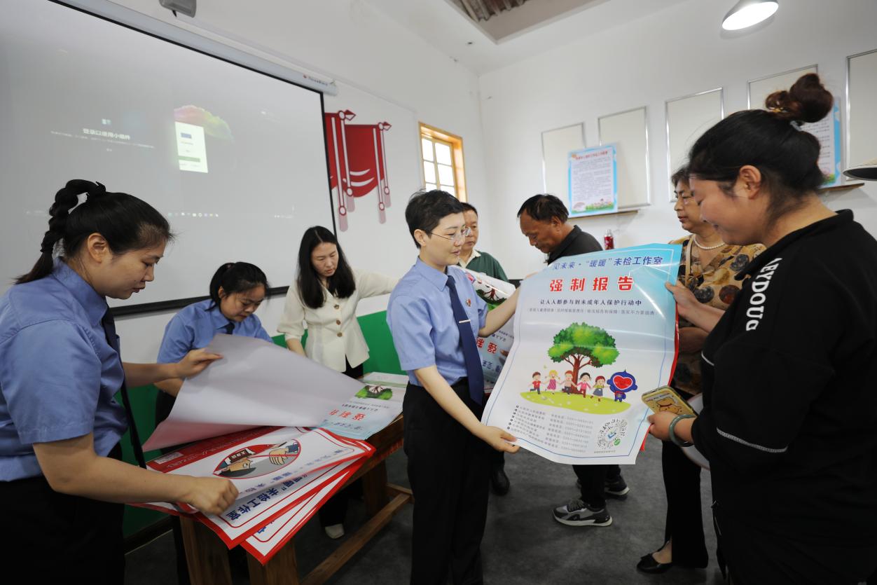 活動(dòng)還特別安排了“強(qiáng)制報(bào)告”制度的宣講環(huán)節(jié)。李玥言通過(guò)播放短視頻和案例剖析的方式,向在場(chǎng)的兒童主任和學(xué)校教師代表詳細(xì)解讀了“強(qiáng)制報(bào)告”制度的重要性和實(shí)施方式。同時(shí),檢察院還協(xié)同多家行政部門(mén)制作了“強(qiáng)制報(bào)告”和“文身治理”公益海報(bào),并在現(xiàn)場(chǎng)進(jìn)行了張貼和贈(zèng)送,進(jìn)一步呼吁學(xué)校、民政、教體等全社會(huì)力量,從旁觀者成為參與者,共同構(gòu)筑起未成年人保護(hù)“防火墻”。