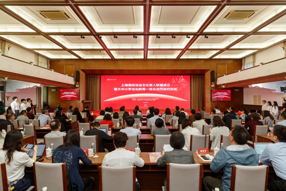 日前,上海高校法治文化育人聯(lián)盟成立暨大中小學(xué)法治教育一體化合作簽約儀式在華東政法大學(xué)舉行。聯(lián)盟將依托成員高校法學(xué)學(xué)科優(yōu)勢和專業(yè)特色,大力繁榮社會主義法治文化,落實立德樹人根本任務(wù),培養(yǎng)德法兼修的高素質(zhì)法治人才,進一步提高法治宣傳教育的針對性、實效性,形成全方位、多層次、立體式的法治文化傳播格局。