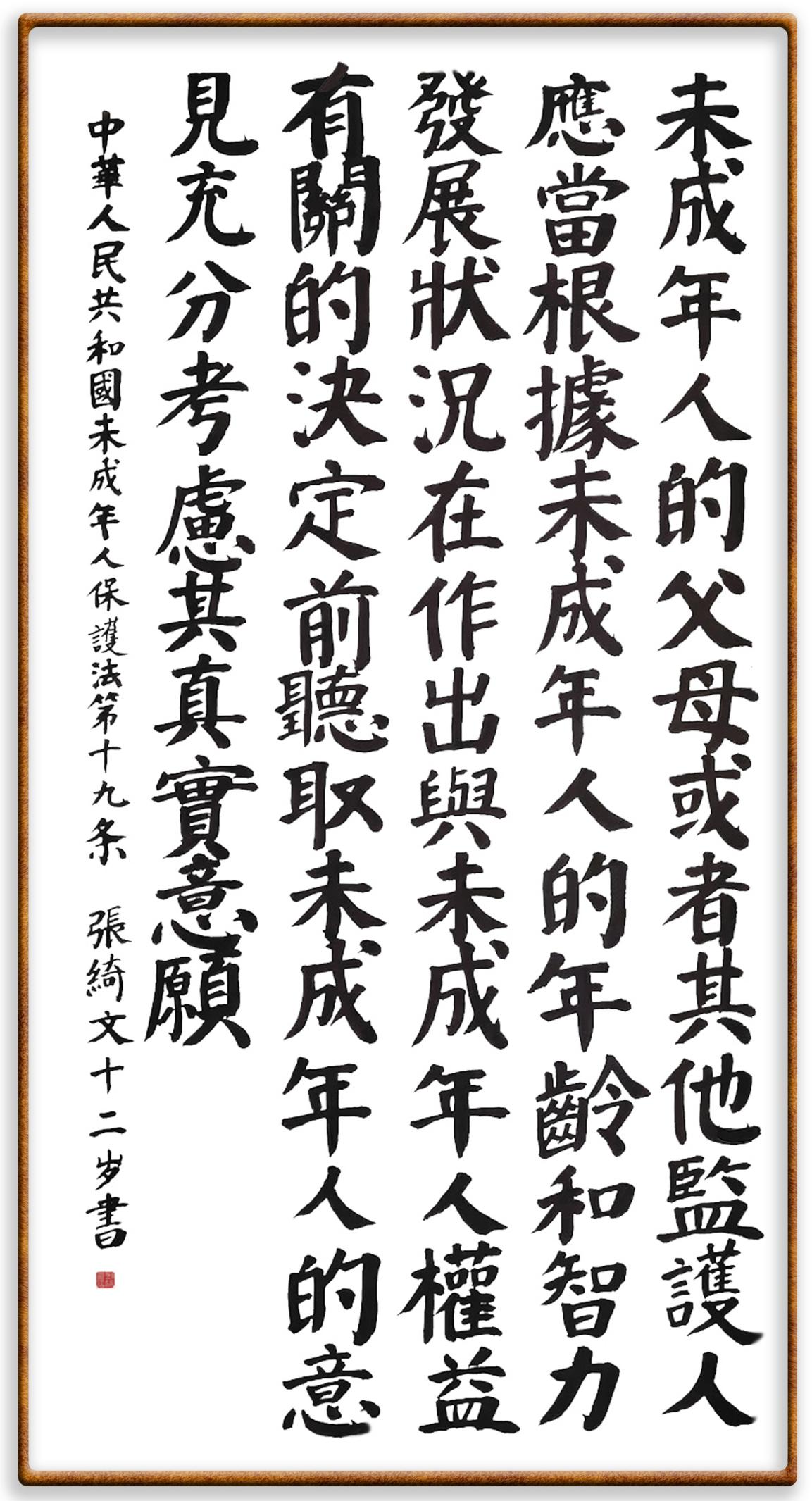 “六一”國際兒童節(jié)來臨之際,法制日報社聯(lián)合(全國)教育書畫協(xié)會基礎(chǔ)書法教育分會,推出“‘書·法’系列活動之書寫《中華人民共和國未成年人保護法》活動”,邀請小朋友書寫部分法條,讓孩子們在濃濃的節(jié)日氛圍中感受傳統(tǒng)文化的獨特魅力。