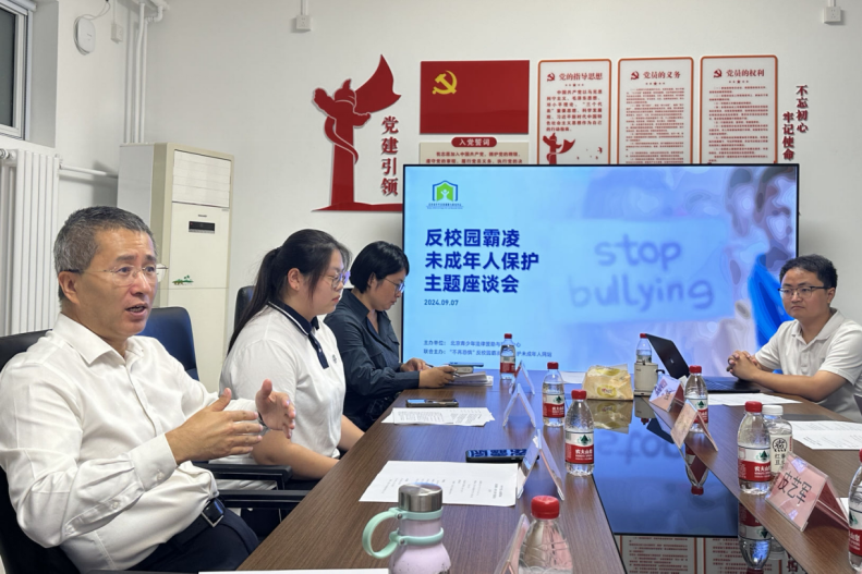 9月7日,以“反校園霸凌 未成年人保護(hù)”為主題的座談會(huì)在北京青少年法律援助與研究中心舉辦。法學(xué)專家、法律援助律師、心理專家、學(xué)生與家長(zhǎng)代表們圍繞校園霸凌行為的危害性、法律救濟(jì)的理論與實(shí)踐,深入交流研討,集實(shí)招、謀良策,引導(dǎo)社會(huì)各界共同守護(hù)青春校園與未成年人健康成長(zhǎng)。