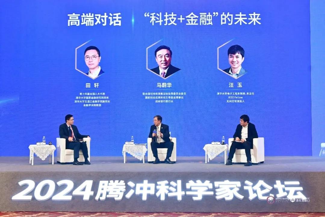 “‘科技+金融’的未來(lái)”高端對(duì)話(huà)環(huán)節(jié),第十四屆全國(guó)人大代表、清華大學(xué)國(guó)家金融研究院院長(zhǎng)、清華大學(xué)五道口金融學(xué)院副院長(zhǎng)、金融學(xué)講席教授田軒,聯(lián)合國(guó)可持續(xù)發(fā)展目標(biāo)指導(dǎo)委員會(huì)委員、國(guó)家科技成果轉(zhuǎn)化引導(dǎo)基金理事長(zhǎng)、招商銀行原行長(zhǎng)馬蔚華,清華大學(xué)電子工程系教授、系主任,IEEE Fellow,無(wú)問(wèn)芯穹發(fā)起人汪玉分別發(fā)表觀點(diǎn)。