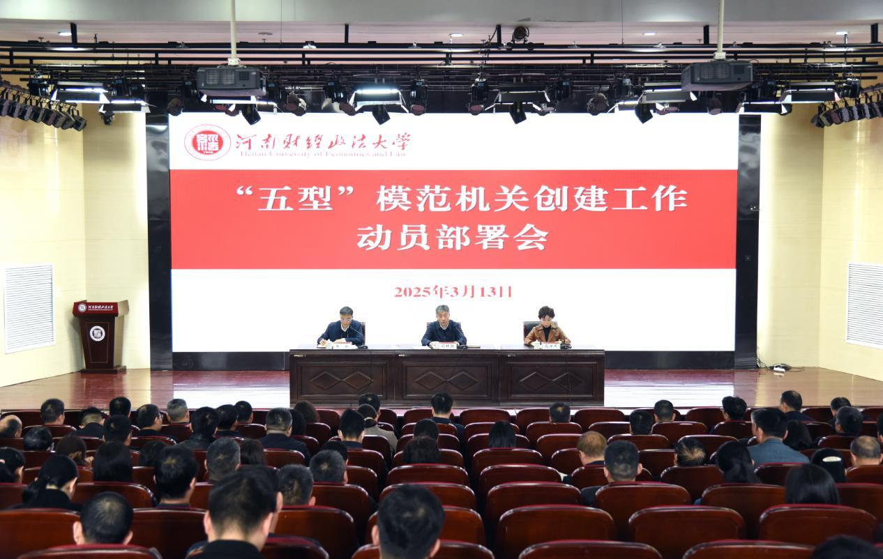 本報訊 記者趙紅旗 近日,河南財經(jīng)政法大學(xué)舉行“五型”模范機關(guān)創(chuàng)建工作動員部署會。