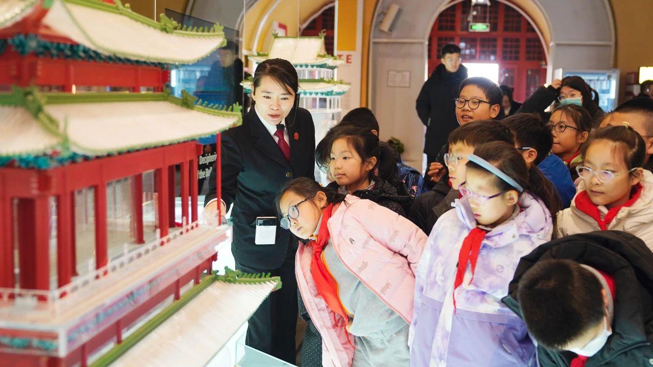 張亞婷又講了一個(gè)在古建筑上刻劃涂鴉的小案例,還沒說完,同學(xué)們爭先恐后地舉起手:“這是違法行為,要罰款!”在鼓樓二樓,同學(xué)們近距離觀看了現(xiàn)場打鼓表演,并遠(yuǎn)眺中軸線。激昂的鼓聲,壯美的中軸之景,不僅是對歷史的回響,更是對文化傳承的呼喚。