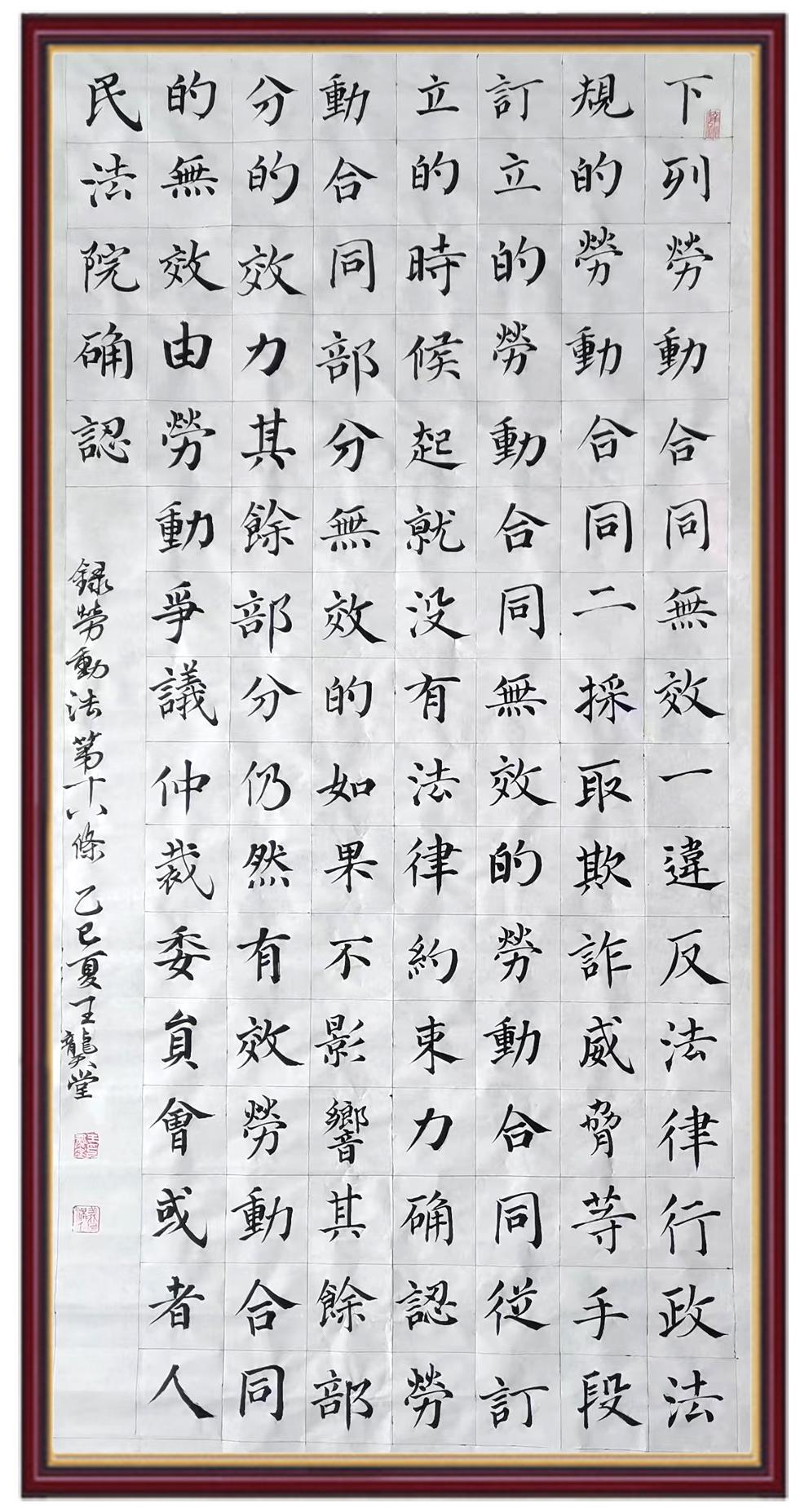 法律,是勞動(dòng)者披荊斬棘的鎧甲;書法,是法治精神薪火相傳的載體。