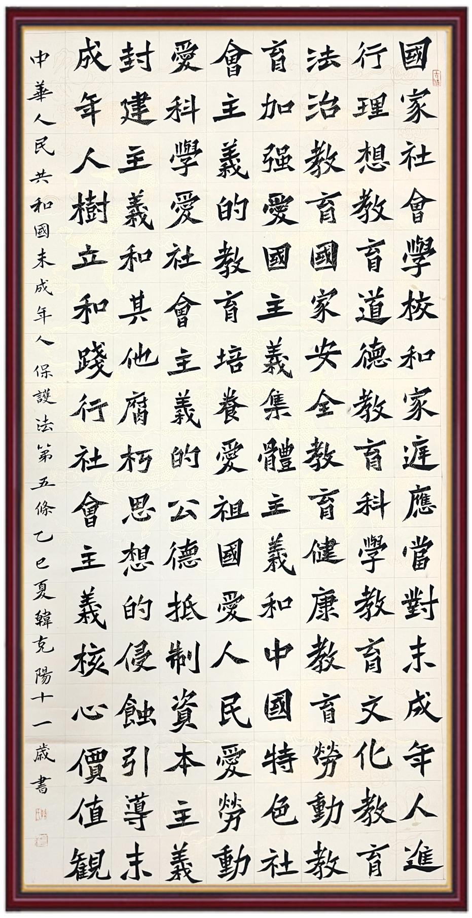 “六一”國際兒童節(jié)來臨之際,“書·法”活動(dòng)邀請小朋友們書寫《中華人民共和國未成年人保護(hù)法》。一筆一畫寫未來,一字一句守純真!