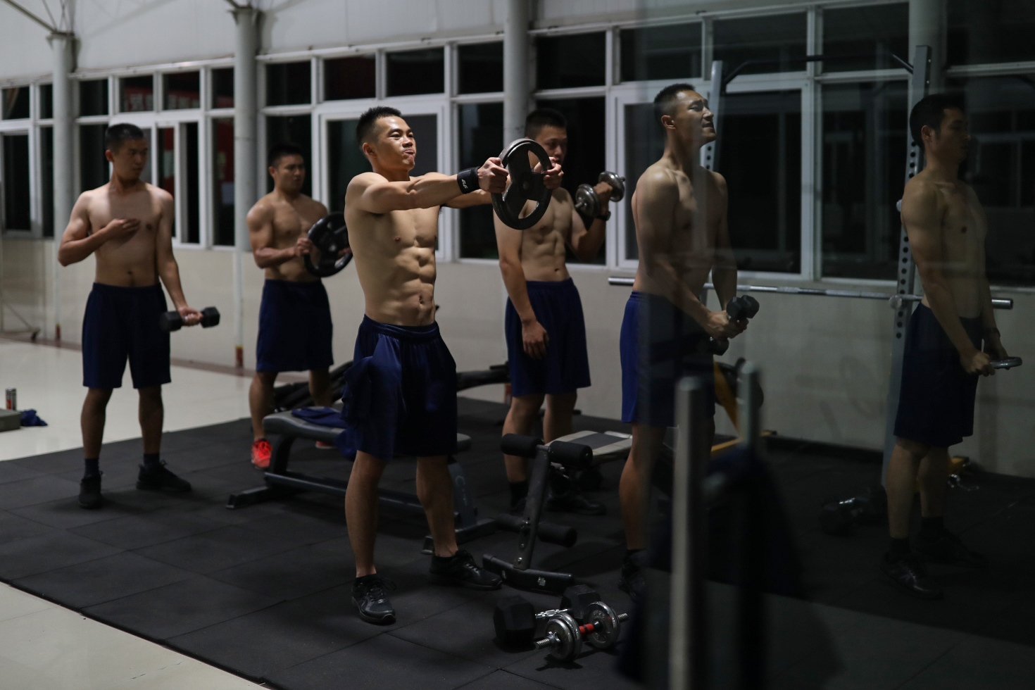 10月4日晚上,新消防員田祥像往常一樣來到訓練大棚開始熱身,雖然國慶放假休息,但他所在的體能“小分隊”沒有一個人缺席。田祥很喜歡自己訓練后大汗淋漓的模樣,他覺得這是一個男人最帥的時候。