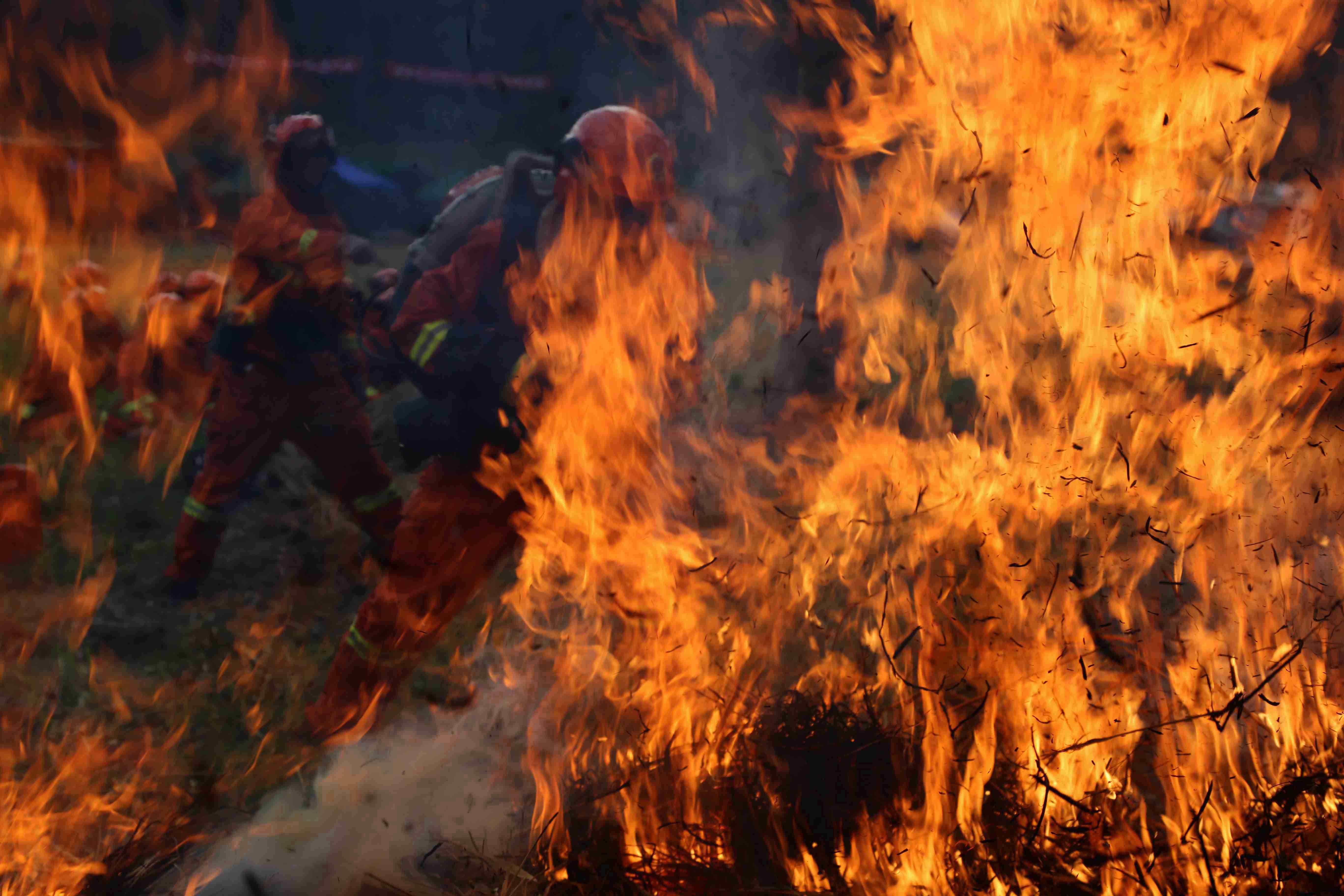 火燒了起來(lái),加斯伍各看到中隊(duì)長(zhǎng)“開始”的手勢(shì),帶頭沖了上去,與灼熱的氣浪剛打了個(gè)照面,他本能地后退了幾步,但一想到老隊(duì)員都在身后看著,這個(gè)要強(qiáng)的彝族小伙不服輸?shù)哪枪蓜乓幌戮蜕蟻?lái)了,揮舞著手中的風(fēng)機(jī)與火魔斗了起來(lái)。