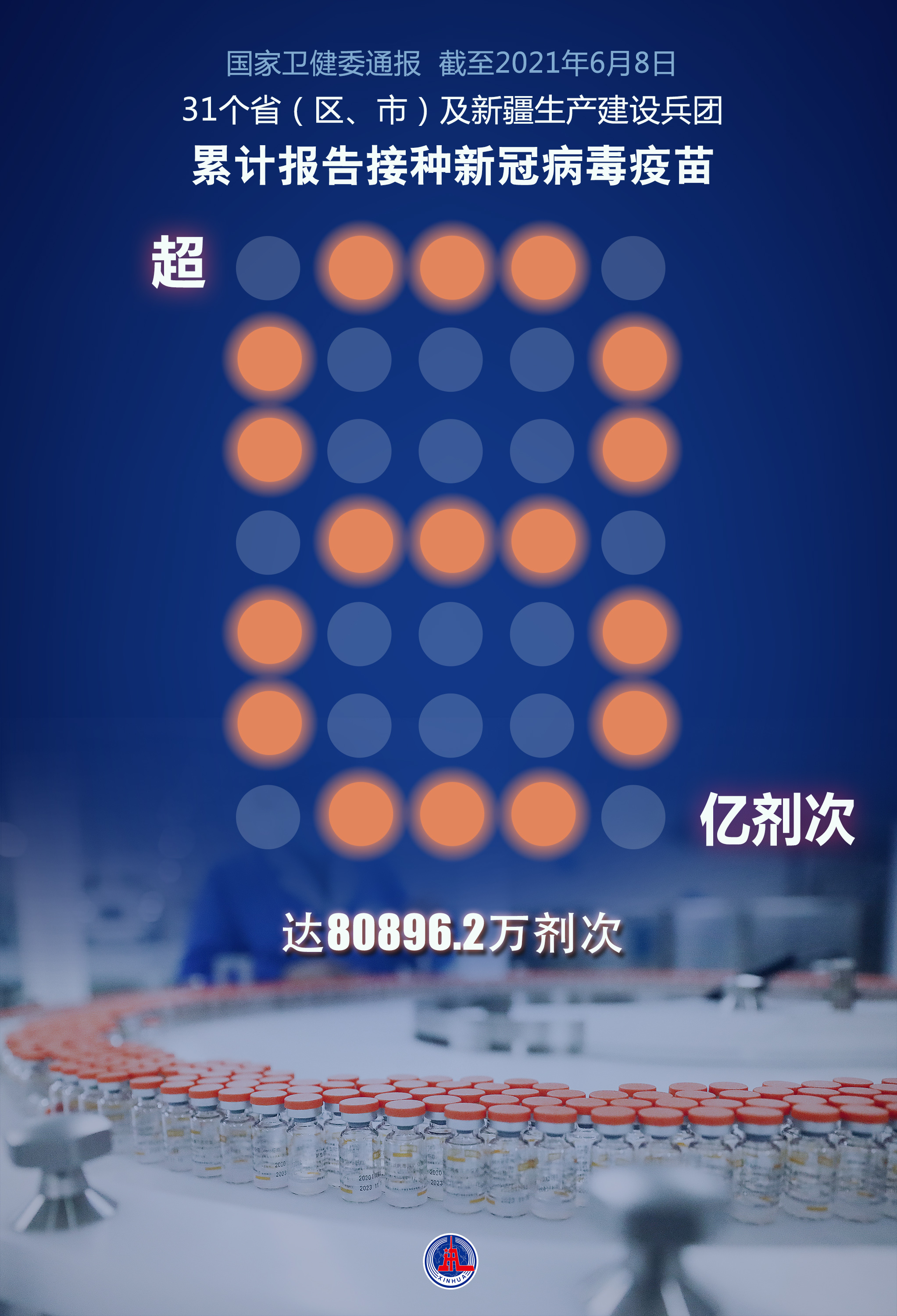 海報:31個?。▍^(qū)、市)及新疆生產(chǎn)建設(shè)兵團(tuán)累計報告接種新冠病毒疫苗超8億劑次