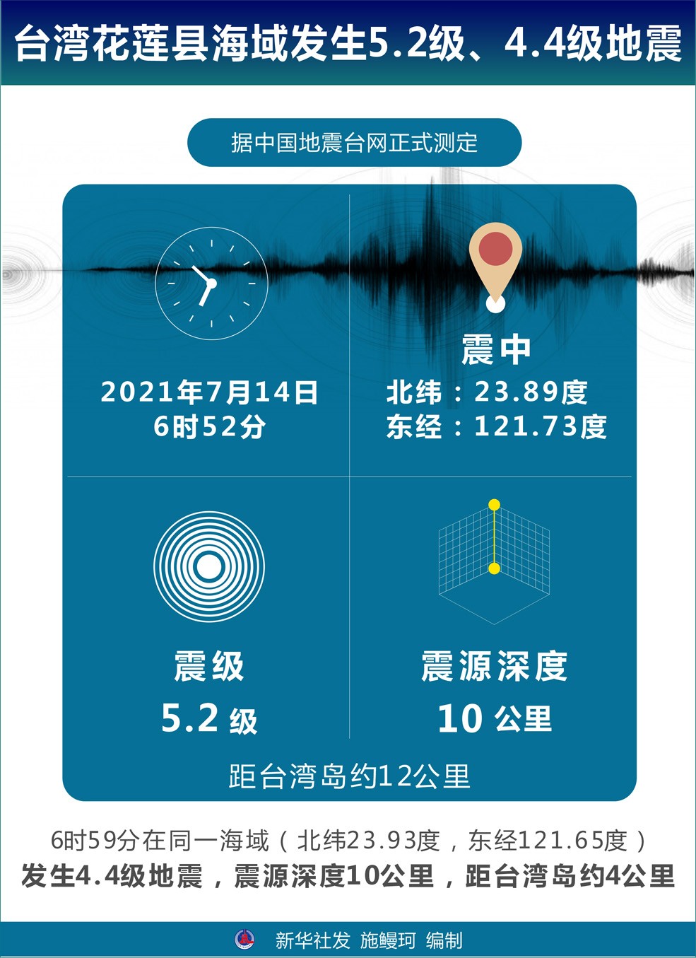 圖表:臺灣花蓮縣海域發(fā)生5.2級、4.4級地震