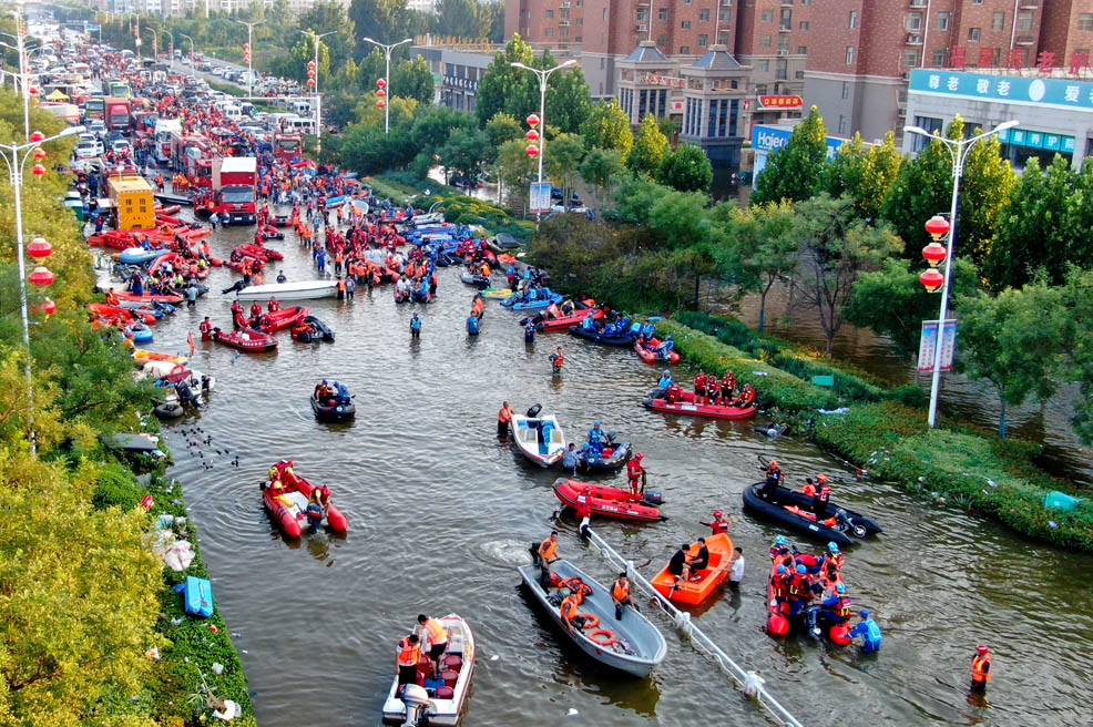 受連日強(qiáng)降雨影響,河南省衛(wèi)輝市新鄉(xiāng)醫(yī)學(xué)院第一附屬醫(yī)院被洪水圍困,院內(nèi)斷水?dāng)嚯姡в嗝颊呱踩艿酵{。