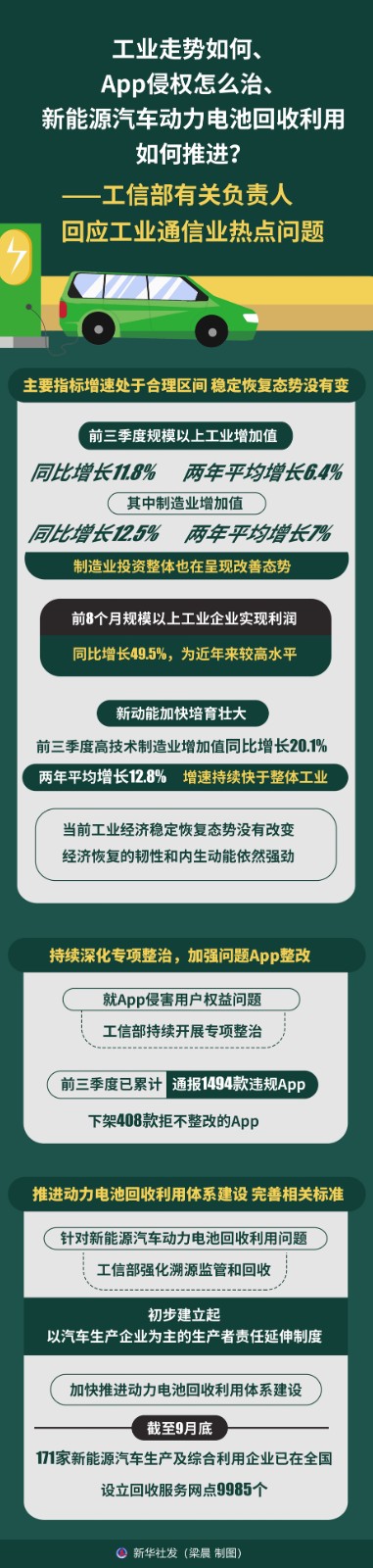 圖表:工業(yè)走勢如何、App侵權怎么治、新能源汽車動力電池回收利用如何推進?——工信部有關負責人回應工業(yè)通信業(yè)熱點問題