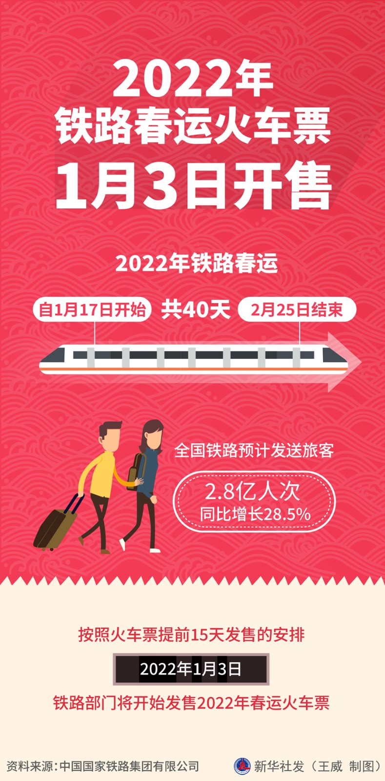 圖表:2022年鐵路春運(yùn)火車票1月3日開(kāi)售