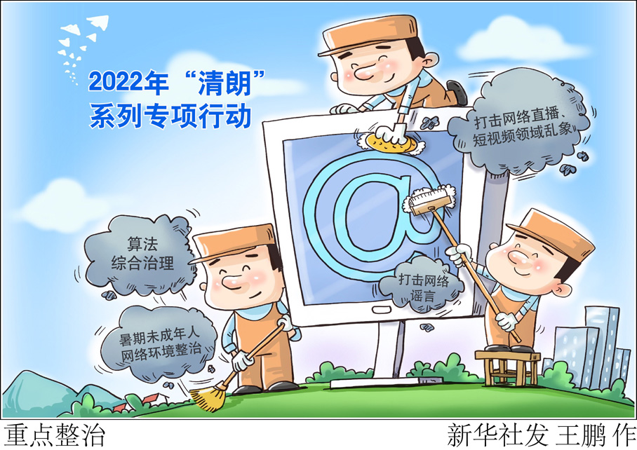 記者3月17日從國(guó)新辦舉行的新聞發(fā)布會(huì)獲悉,2022年“清朗”系列專(zhuān)項(xiàng)行動(dòng)將重點(diǎn)開(kāi)展打擊網(wǎng)絡(luò)謠言,打擊網(wǎng)絡(luò)直播、短視頻領(lǐng)域亂象,算法綜合治理,暑期未成年人網(wǎng)絡(luò)環(huán)境整治等十方面任務(wù)。
