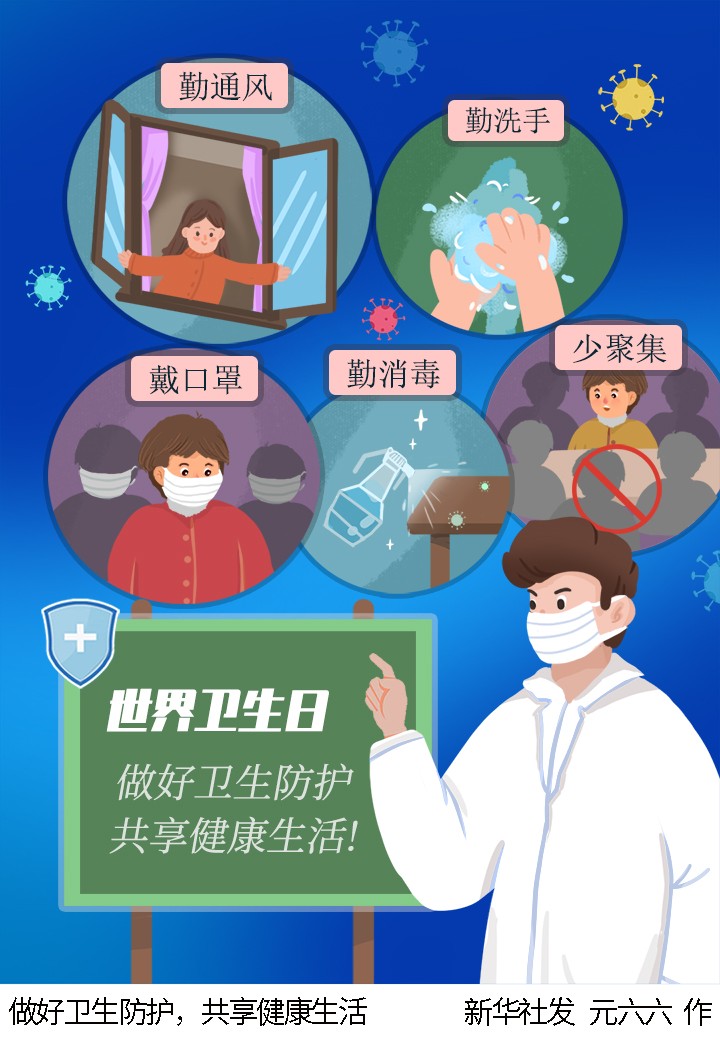 插畫:做好衛(wèi)生防護,共享健康生活
