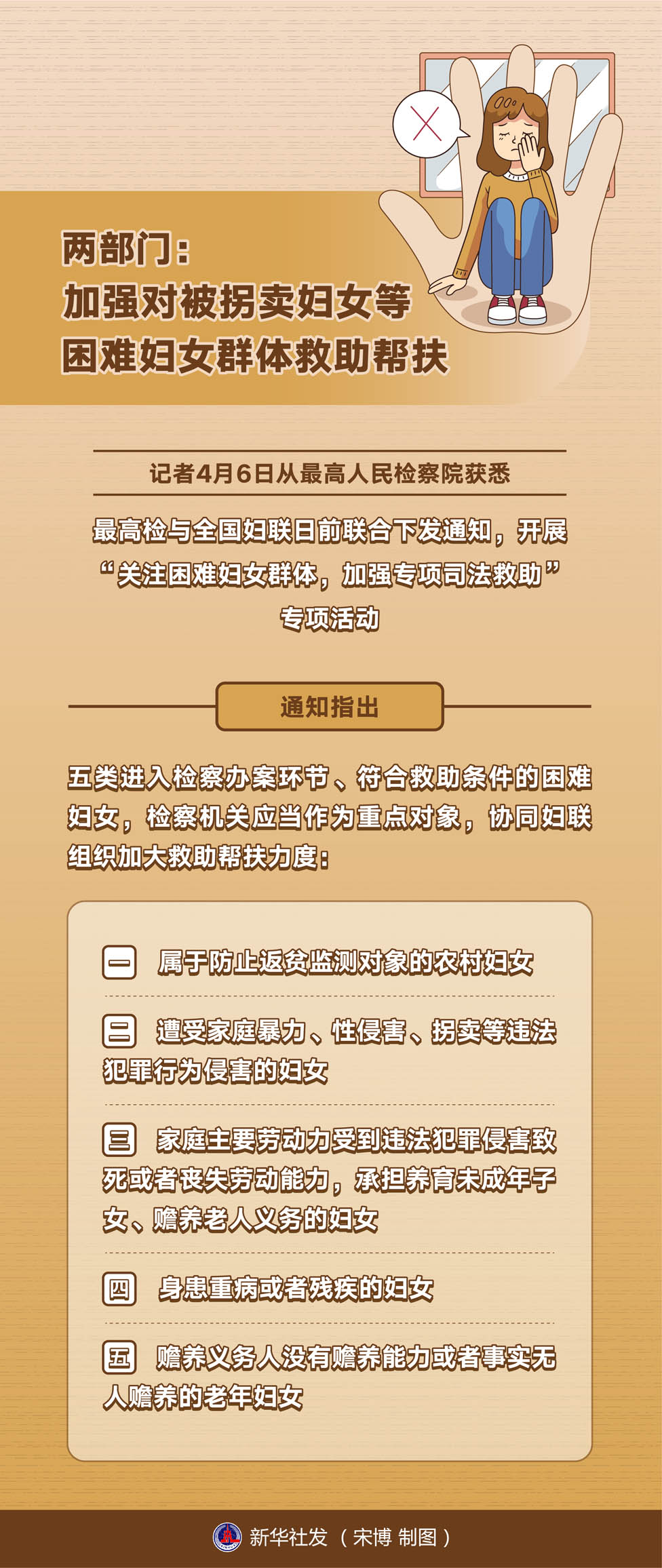 記者4月6日從最高人民檢察院獲悉,最高檢與全國婦聯(lián)日前聯(lián)合下發(fā)通知,開展“關(guān)注困難婦女群體,加強專項司法救助”專項活動。專項活動已于3月啟動,將持續(xù)至今年年底。
