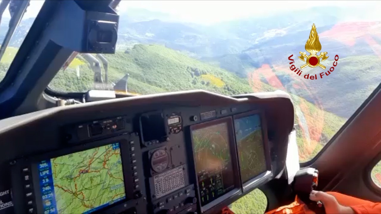 6月10日,消防部門(mén)人員駕駛直升機(jī)在意大利中部地區(qū)搜尋失蹤的直升機(jī)。