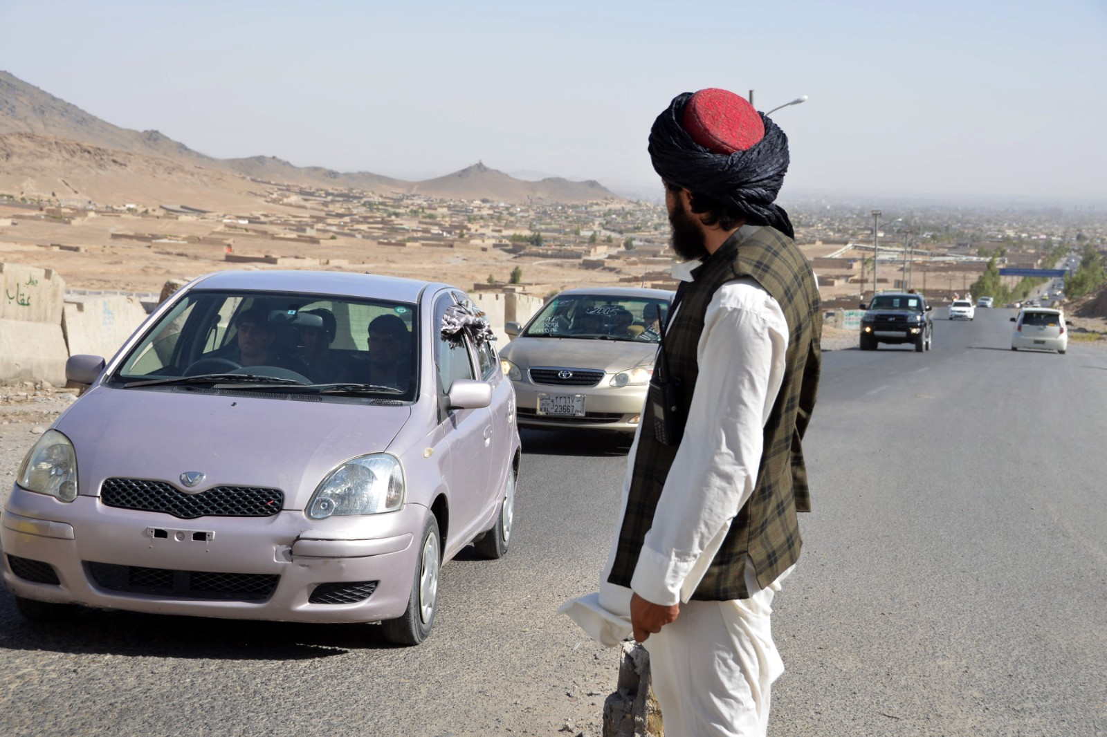 這是6月10日在阿富汗坎大哈省拍攝的一處檢查站。