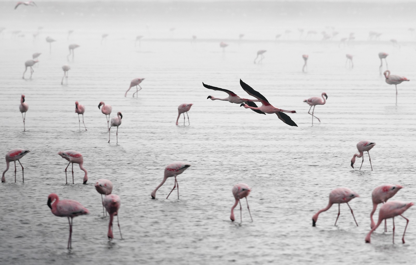 在距離納米比亞首都溫得和克400公里的沃爾維斯灣,生活著上萬只火烈鳥,它們常年都在附近覓食,成為了當(dāng)?shù)氐穆糜蚊?,吸引著世界各地的游客?/p>