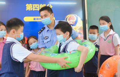 暑期臨近,浙江省臺(tái)州市三門縣公安局珠岙派出所防溺水宣傳小分隊(duì)深入校園開展暑假防溺水安全教育宣傳活動(dòng)。民警通過播放溺水事故、溺水自救等視頻,演示救援和心肺復(fù)蘇知識(shí),提高學(xué)生安全防范意識(shí)和自救能力。 圖為7月5日,民警向?qū)W生進(jìn)行防溺水教育。 法治日報(bào)通訊員 林利軍 攝