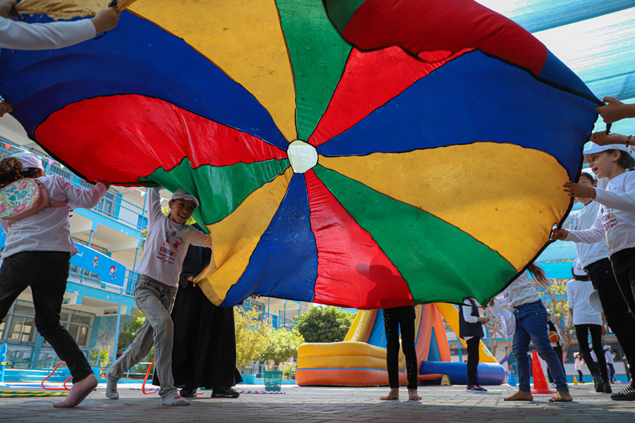 聯(lián)合國機(jī)構(gòu)在加沙地帶開辦夏令營,通過開展各類游戲活動(dòng),幫助孩子們消除戰(zhàn)爭沖突帶來的心理健康問題。