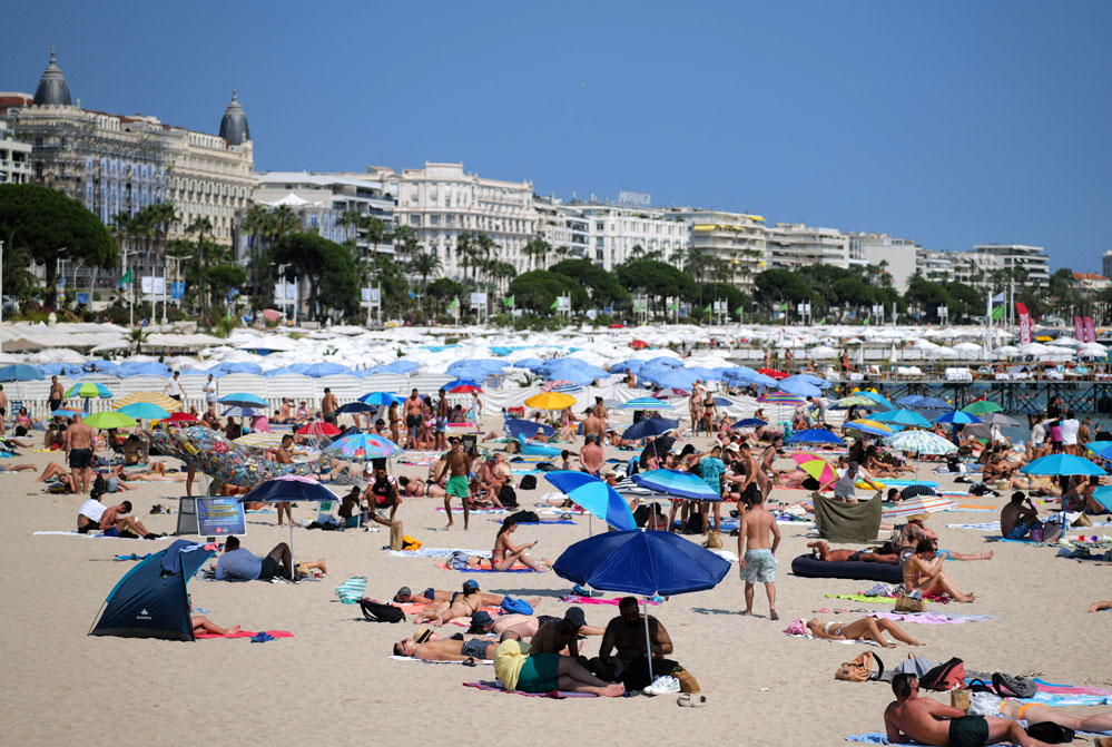 7月13日,人們?cè)诜▏?guó)戛納海邊消暑。