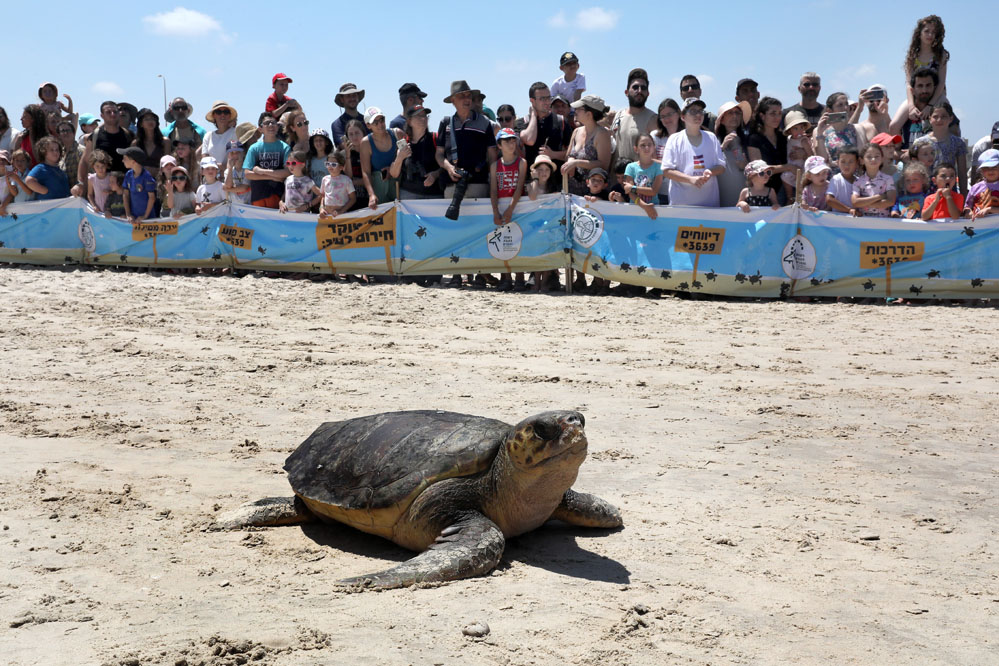 7月8日,在以色列內(nèi)坦亞附近的米赫莫雷特海灘,一只經(jīng)過救治后傷愈的海龜被放歸大海。