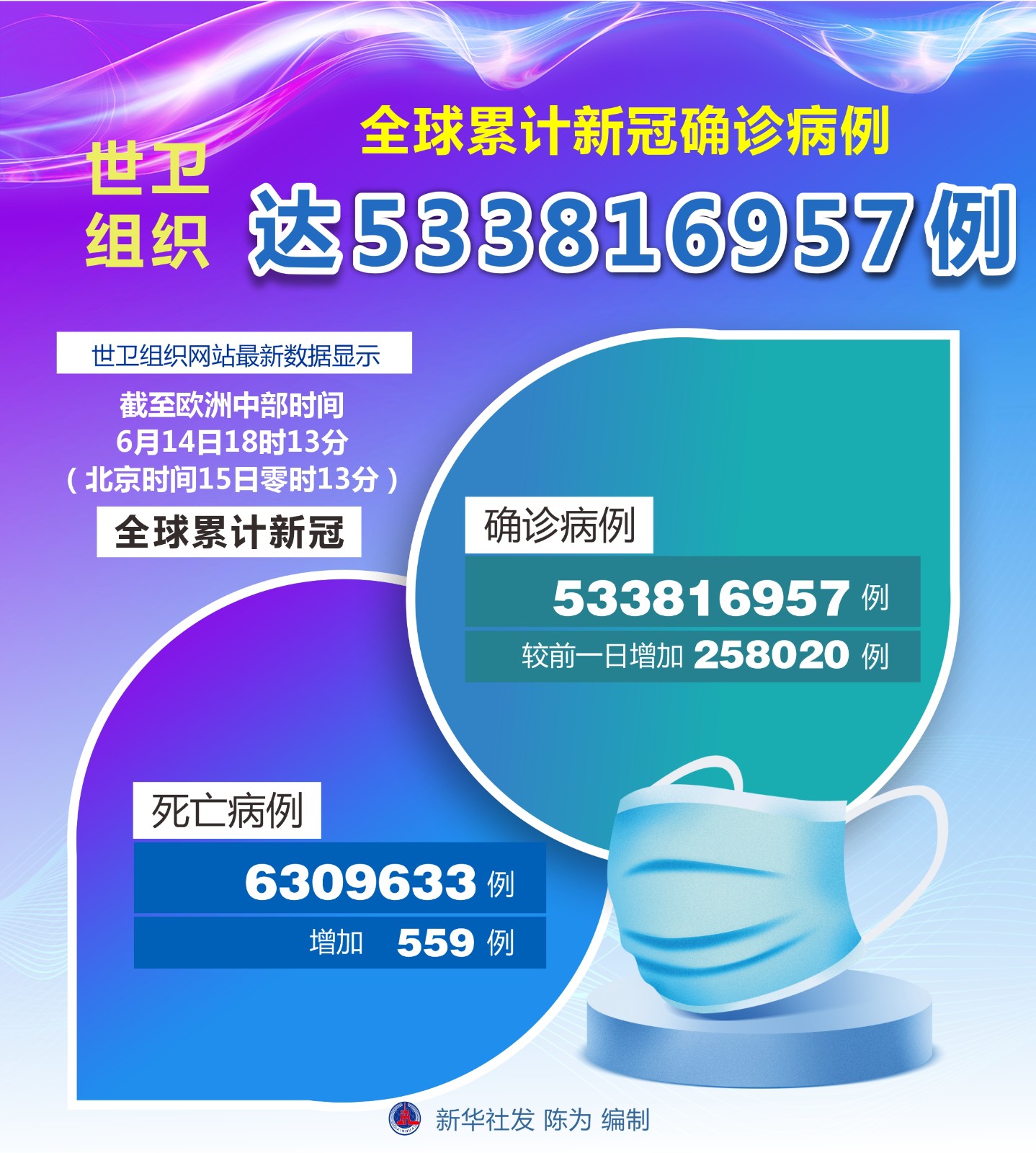 圖表:世衛(wèi)組織:全球累計新冠確診病例達533816957例